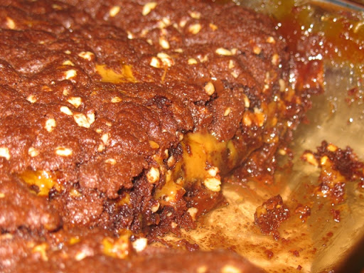 Hay alrededor de 222.000 entradas cuando uno googlea la frase «brownies recipe», así que ésta es sólo una minúscula muestra de lo que se puede lograr combinando chocolate con algunas otras cosas. La receta, tomada de esta página, fue bautizada «Brownies en esteroides» por Hugo. Cuando la hagan, ya sabrán por qué. No es el postre más sencillo de hacer, pero vale la pena. Lamentablemente, ninguna de las fotos que le sacamos le hace justicia a esta gastromaravilla…