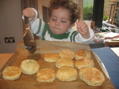 Update: Hay otra versión de los scones publicada por Ceci, un poco más dulzones que éstos.