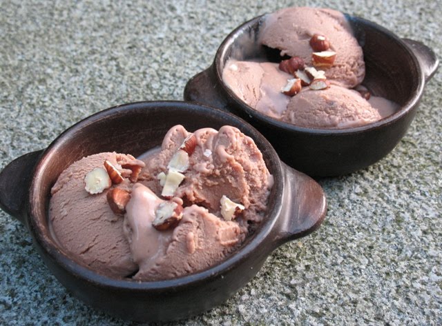 - Residuos de avellana: si usted odia botar comida, o si tuvo la desgracia de probar lo que sobró de este potingue, se dará cuenta de que es una verdadera lástima desechar este residuo. Leyendo los reviews de la página de donde saqué la receta, vi que algunos no lo descartaron y se lo pusieron al helado de todos modos. Yo creo que lo rico de este helado es la textura sedosa que tiene, pero se puede hacer el siguiente experimento: extender todo el residuo en una bandeja, meterla al horno y hornear hasta que esté crujiente, luego esparcir sobre el helado ya listo. O, mejor todavía, hacer unas galletas de mantequilla usando esta pasta (prometo montar la receta pronto). ¿Alguna otra sugerencia?