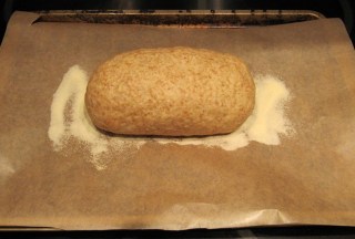 •  Una vez que haya crecido bastante, golpear la masa hasta sacarle todo el aire y reducir el tamaño nuevamente.  Darle la forma definitiva al pan (puede ser en barra, redondo, o dividido en panecillos).  Poner sobre una bandeja (si es de buena calidad, no hace falta engrasar.  Si tienen a la mano, el pan queda delicioso si se hornea sobre una capita de semolina).