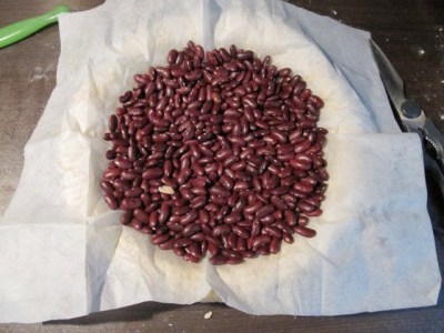 • «Hornear a ciegas» (blind bake / ): para que la masa no se encoja o se infle, se pincha la base varias veces con un tenedor, se le pone una hoja de papel parafinado (=papel de cera) y se le echa encima unas peloticas de cerámica especiales para hornear o algún grano (caraotas/frijoles o arroz, por ejemplo). El peso y el calor ayudan a que la masa se cocine parejo. Hornear por unos 8-10 minutos, luego quitar el papel con los granos y hornear por unos 3-5 minutos más. Lo que se use para hornear a ciegas luego no sirve para comer, pero se puede reusar para la próxima vez.