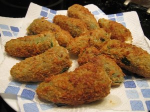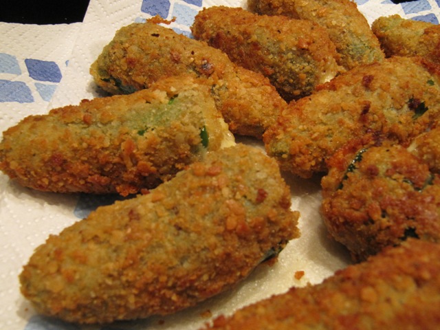 Hay que admitir que los gringos tienen algunos destellos de genialidad en la cocina.  Uno de ellos, sin duda, es este favorito de la comida tex-mex: los jalapeño poppers.  Es claro que son una variante de los chiles rellenos (un plato no sólo común en México, sino en cualquier parte donde los pimentones / ajíes / morrones / chiles / pimientos sean parte clave de la cocina local).