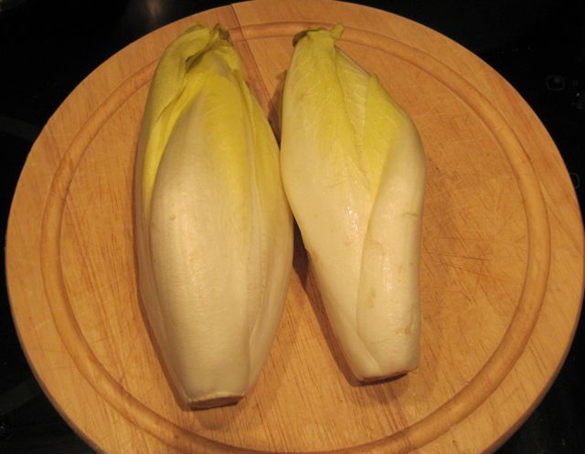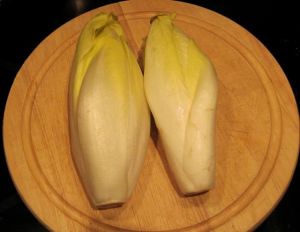 Buscando qué hacer con unas endivias/endibias que compré en estos días, di con esta receta de Allrecipes (¿cuándo no?). Son sabores bastante fuertes, no para el que está habituado a la ensaladita sosa de lechuga, tomate y pepino. Sirve como acompañante, pero también es un buen plato vegetariano principal (o una cena ligera). Calculen una endivia por persona, más o menos, si lo usan como acompañante.