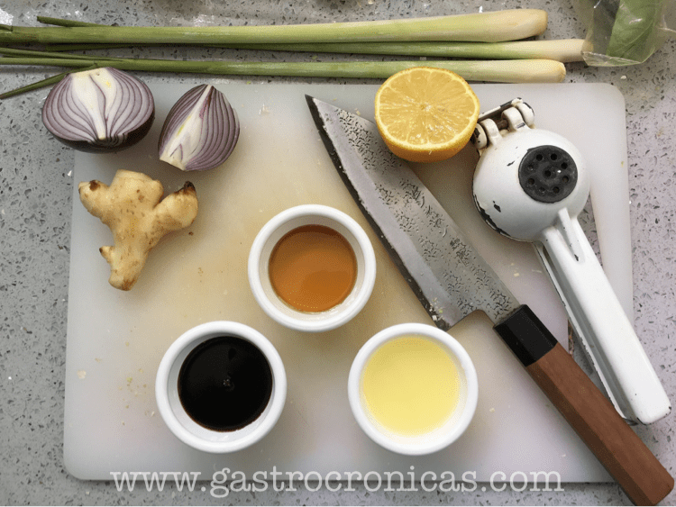 Las cantidades son al ojo. Tiene que haber un balance entre la sal de la salsa de pescado y la soya, el dulzor del azúcar, y los aromas del jengibre y el ajo, pero sin duda lo que tiene que predominar es el lemongrass. ¡No escatimen! El pollo tiene que quedar bien gustoso.