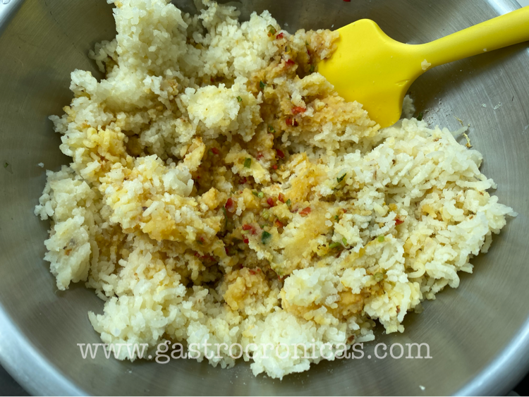 - A mí me gusta dejar esta mezcla reposando en la nevera por algunas horas, pero si no tienen tiempo, no pasa nada. Con las manos húmedas, ir haciendo torticas pequeñas (que son más fáciles de manipular a la hora de cocinar).