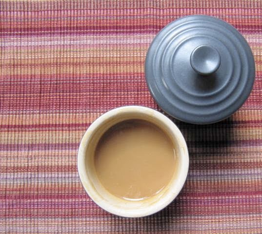 - Pasar a un recipiente no reactivo (tipo vidrio o cerámica), y dejar a temperatura ambiente hasta que la leche llegue a 38-43 °C / 100-110 ºF.