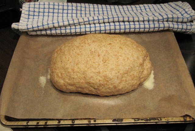 Repitan este proceso de doblar la masa sobre sí misma unas tres veces, hasta que sientan que empieza a tener forma. Al terminar, mojar ligeramente la masa para que no pegue, y cubrir con plástico. Dejar reposar por unos 15 minutos y repetir la doblada, sin manipularla demasiado. Cubrir y dejar reposar. Repetir una vez más. A medida que lo hagan, van a notar cómo la masa, que inicialmente parecía no tener nada de estructura, va tomando forma. Obviamente no va a tener la suficiente estructura como para mantenerse redonda, pero no importa porque no vamos a hacer baguettes o boules. Si después de 3 repeticiones sienten que aun necesita una doblada extra, háganla sin problema. Después de esto, dejen la masa reposar unos 20-30 minutos más (como pueden adivinar, la temperatura de su cocina y de la masa van a determinar cuán rápido crece o no).