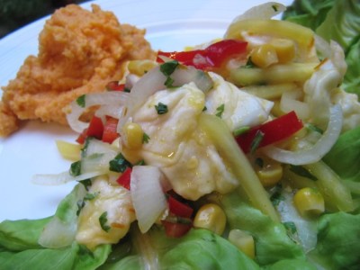 - El ají amarillo se parece al ají dulce venezolano (pero con un toque sutil de picante). Si están en Venezuela, usar 5-6 ajíes dulces y uno picante. Si están en otras latitudes y no consiguen el ají amarillo, tal vez se pueda conseguir un sabor parecido con una mezcla de pimentón / morrón amarillo y algún ají/chile picante, tipo poblano o tailandés.