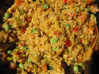 Pueden fajarse a cortar todo pequeñito, o pueden meter todos los ingredientes (excepto el pollo, claro está) en un procesador. Combinar con las tiritas de pollo y dejar marinar por varias horas (preferiblemente unas 24 horas).