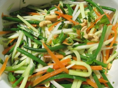 Una alternativa que también existe en la cocina tailandesa, es la ensalada de mango verde (som tam mamuang), también cortado en hilitos.
