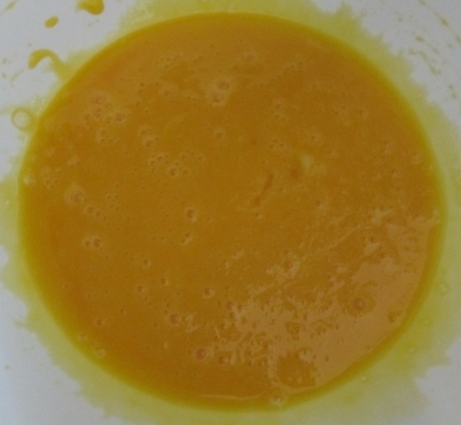 - Agregar los tres huevos previamente batidos, y también el papelón rallado. Mezclar bien.