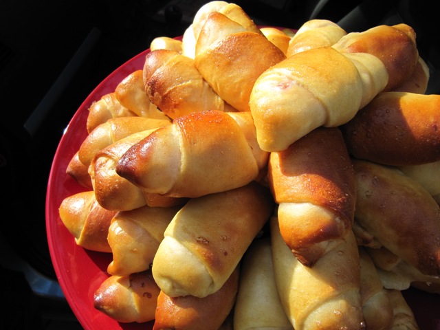 I put it off for as long as I could, but finally I’ve decided to translate some of the recipes into English, beginning with the Venezuelan ones. A couple of months ago there was an End of Summer Party at Diego’s crèche, and I made some “cachitos de jamón”. The literal translation would be something like little ham horns, a sweetish bread rolled like a croissant and filled with ham (or turkey, or ham and cheese –use your imagination). I couldn’t have imagined how popular they’d become. Some friends have asked me for the recipe, so here it is, with some history as to where they come from and how important they are to Venezuelans. As you know, English is not my first language, so please forgive any grammatical atrocities you may find below…