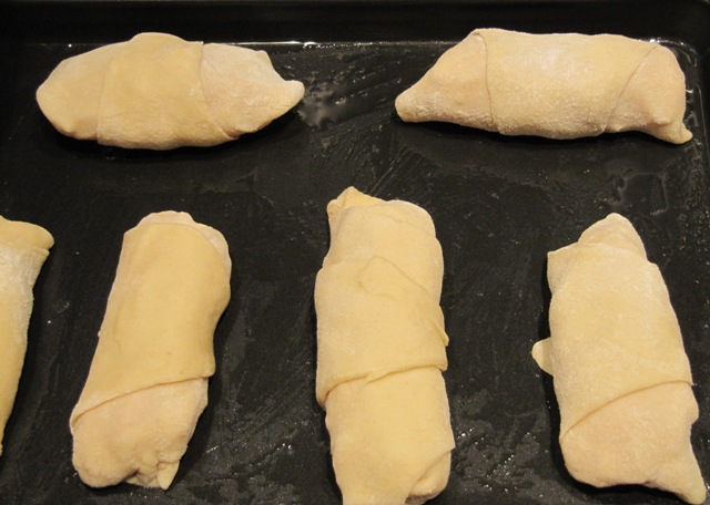 - When placing the cachitos on a greased baking sheet, put the vertex facing down. Leave enough space between each cachito, as they will grow considerably in the oven.